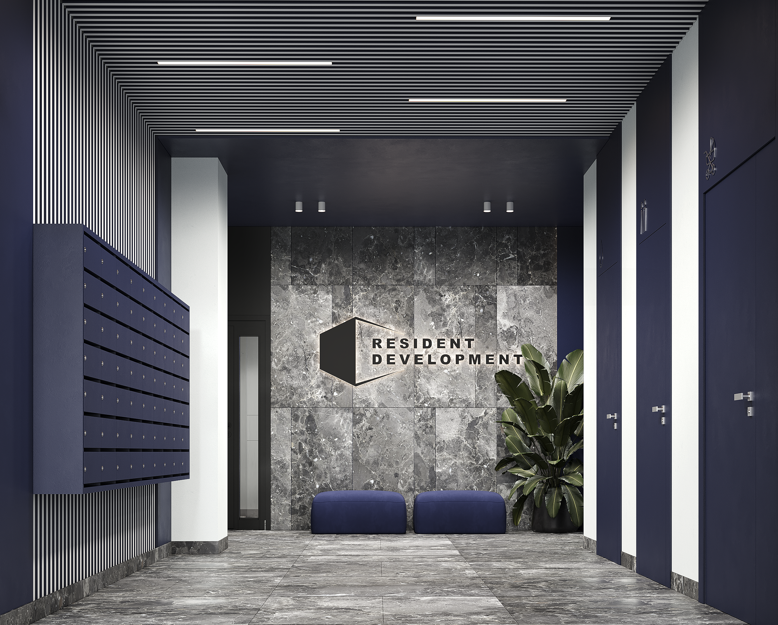 Просторі лобі з авторським дизайном, м’яким освітленням та зонами очікування. Простір для мешканців і гостей, що створює відчуття приватності та преміальної якості з перших кроків.